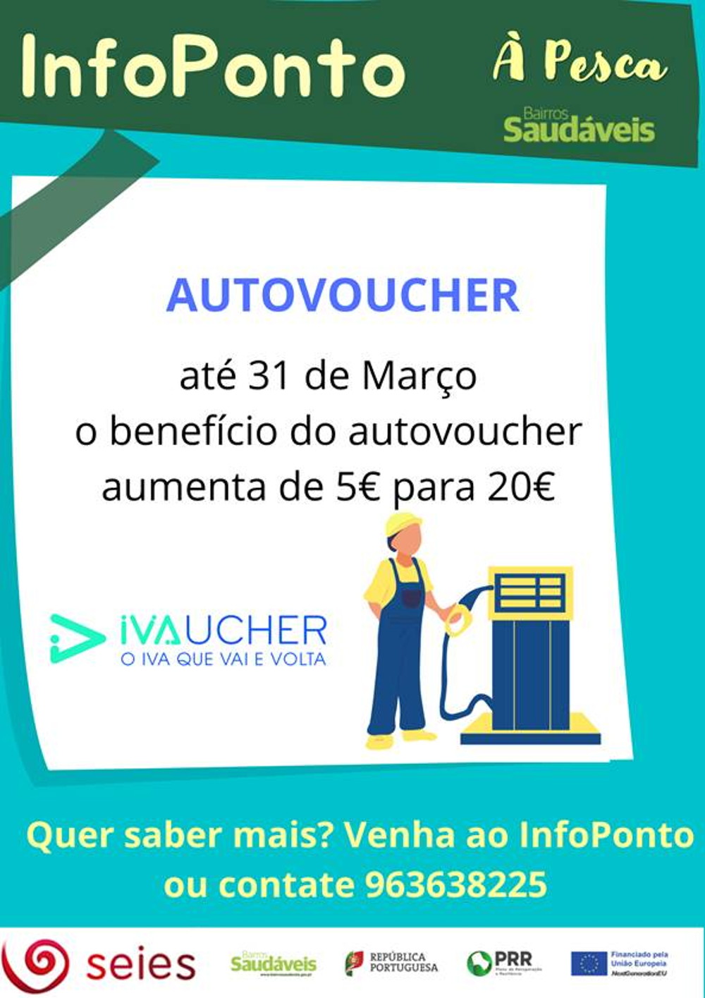 O InfoPonto está a dar apoio na adesão ao Ivoucher. Até 31 de março a adesão ao AutoVoucher permitirá num abastecimento de 50€, sejam reembolsados 20€ na conta bancária automaticamente. Os horários e locais dos InfoPontos: