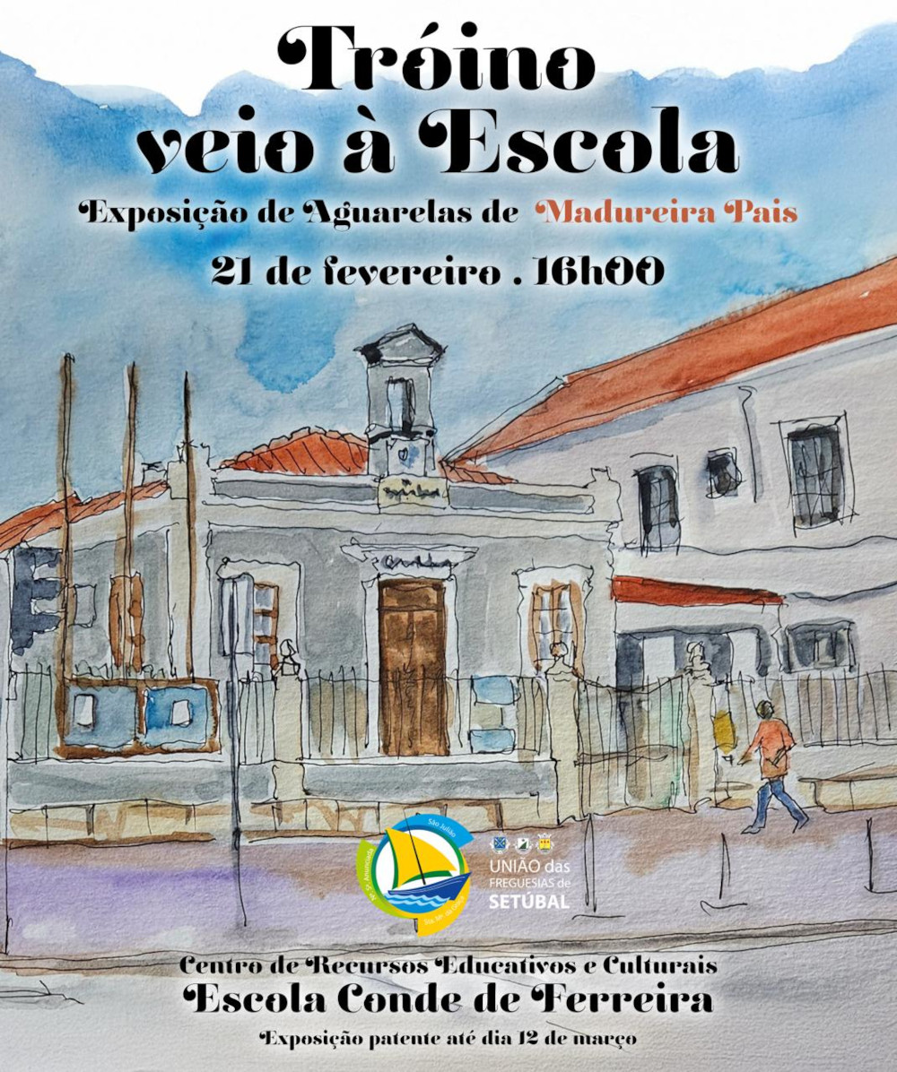 A União das Freguesias de Setúbal convida toda a população a estar presente na inauguração da exposição de aguarelas "Tróino veio à Escola", do conceituado artista Madureira Pais.